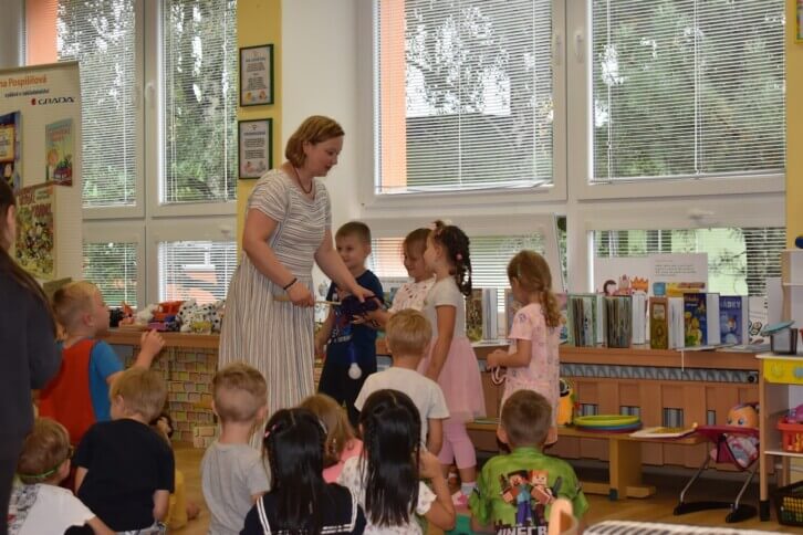 V pátek 12. září jsme v mateřské škole prožili krásné dopoledne se spisovatelkou Zuzanou Pospíšilovou, která si pro naše předškoláky ze tříd Včeličky a Žabičky připravila interaktivní program s názvem „Čtení není nuda“.