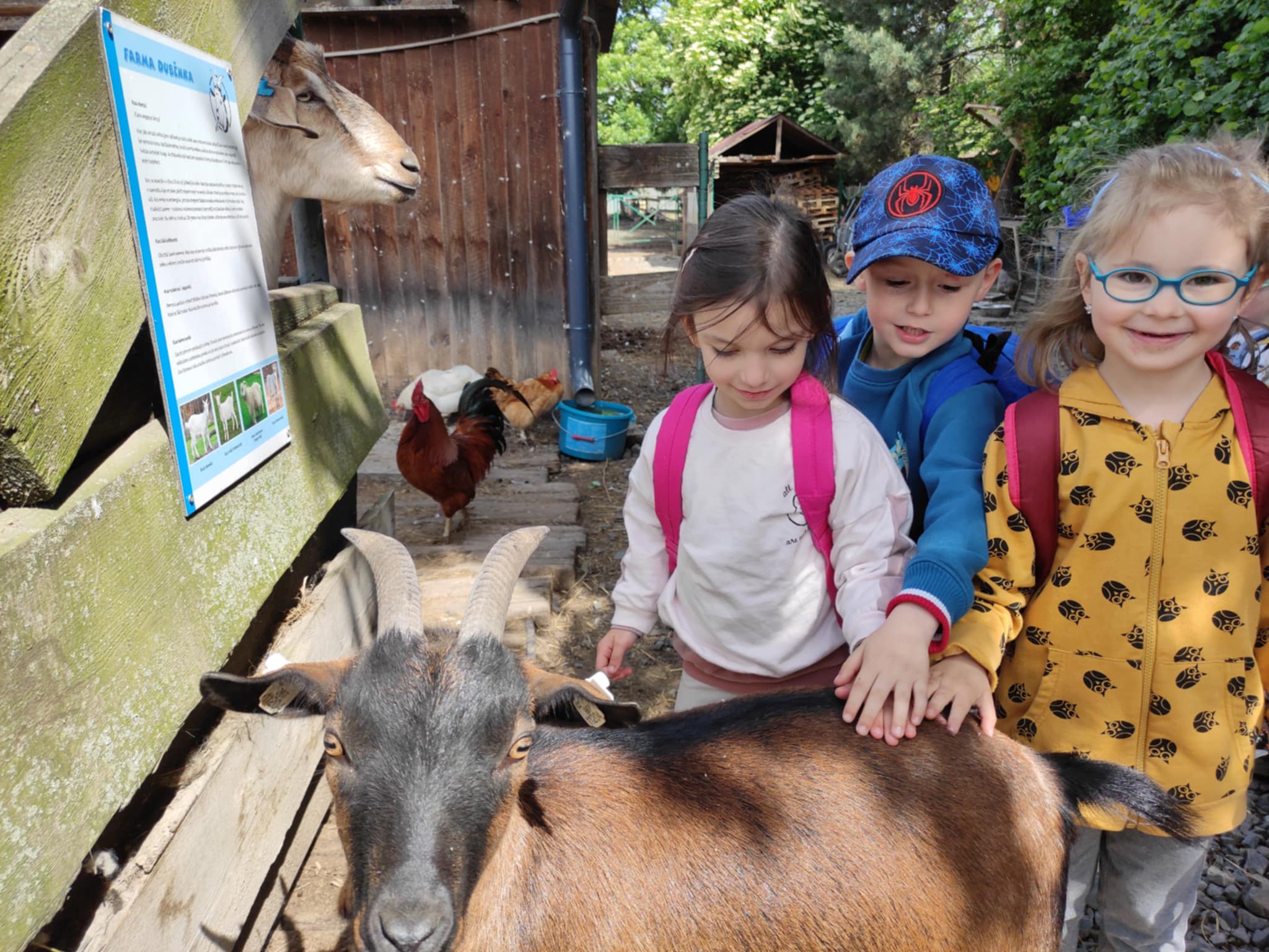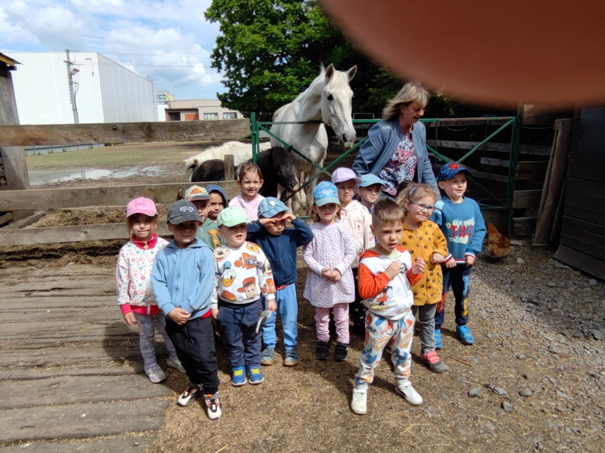 Navštívili jsme farmu Duběnka v Ostravě Hrabové. Paní farmářka nás velmi přívětivě přijala. Nejprve jsme navštívili králíčky, které jsme si také pohladili a nakrmili mrkvičkou. Dále jsme navštívili všechny ptačí obyvatele farmy. Seznámili jsme se s krůtou Toničkou a různými druhy slepiček a holoubků. Viděli jsme i krásně zbarvené kohoutky. Byli jsme také u kačenek, kde mají jednoho samečka běžce. Dále jsme navštívili také koně a poníky, které jsme mohli také krmit chlebem. Natáhli jsme napnutou ruku a bylo to. Všichni jsme si to vyzkoušeli. Potom jsme byli u koziček a oveček. Ty jsme také nakrmili. Zvířátka byla velmi milá a vděčná za pohlazení. Děkujeme paní farmářce za představení všech zvířátek. každé z nich mělo své jméno. Celé dopoledne jsme si se zvířátky hezky užili.