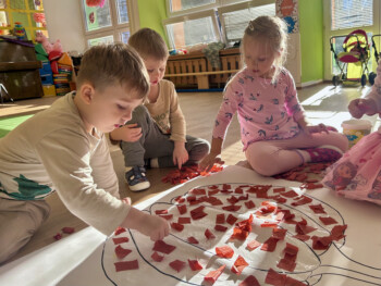 K tomu jsme procvičovali barvičky a učili jsme se i základní tvary, které děti objevovaly v přírodě, ve třídě i při tvoření.