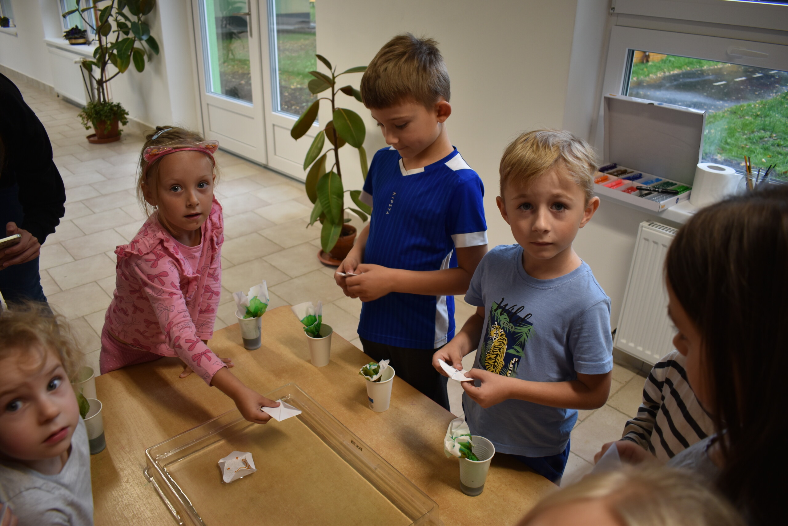 Kroužek Badatelé jsme zahájili tématem příroda, které jsme propojili s pokusy s vodou. Děti si vyzkoušely, jak se voda chová v různých situacích, a měly možnost samy objevovat a zkoumat. Vše jsme ladili do podzimní atmosféry, aby se z badatelského dopoledne stala i krásná sezónní zkušenost.
