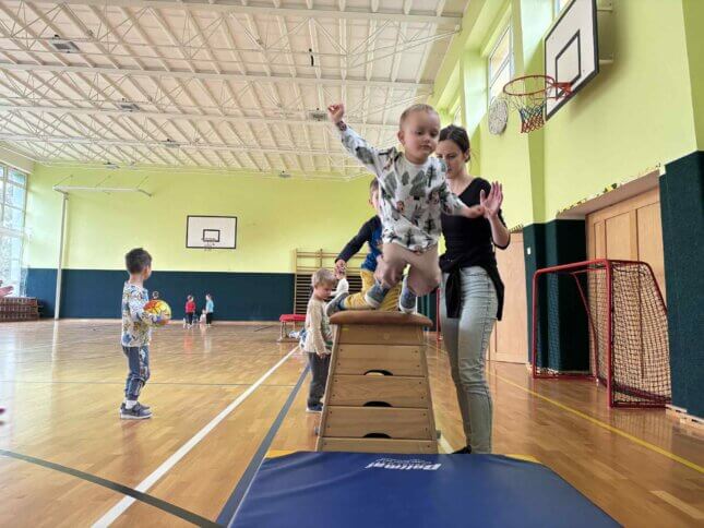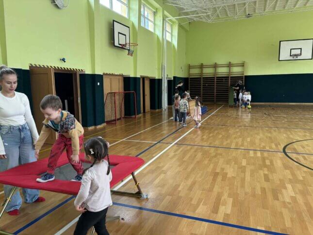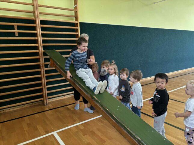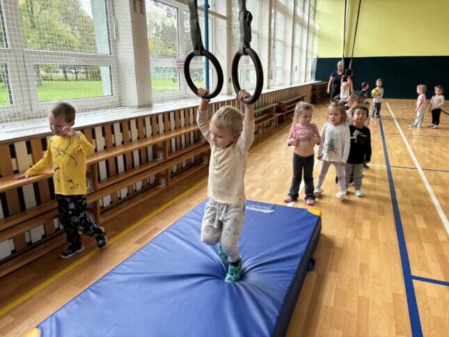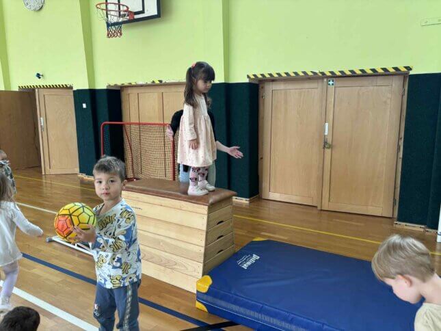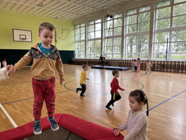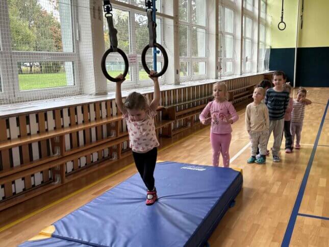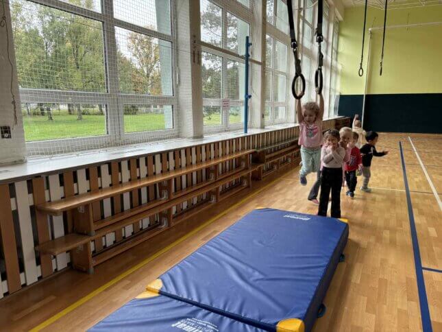 Sovičky a Berušky se vydaly na výlet do tělocvičny naší základní školy. Tam na nás čekalo spoustu zábavy a pohybu! Děti běhaly, skákaly, lezly, klouzaly se po lavičce, houpaly se na kruzích a zkoušely i trampolínu nebo švédskou bednu. Všichni si to moc užili a z tělocvičny jsme odcházeli s úsměvem a růžolícími tvářemi. Už se těšíme, až si půjdeme zase společně zasportovat! 🧡