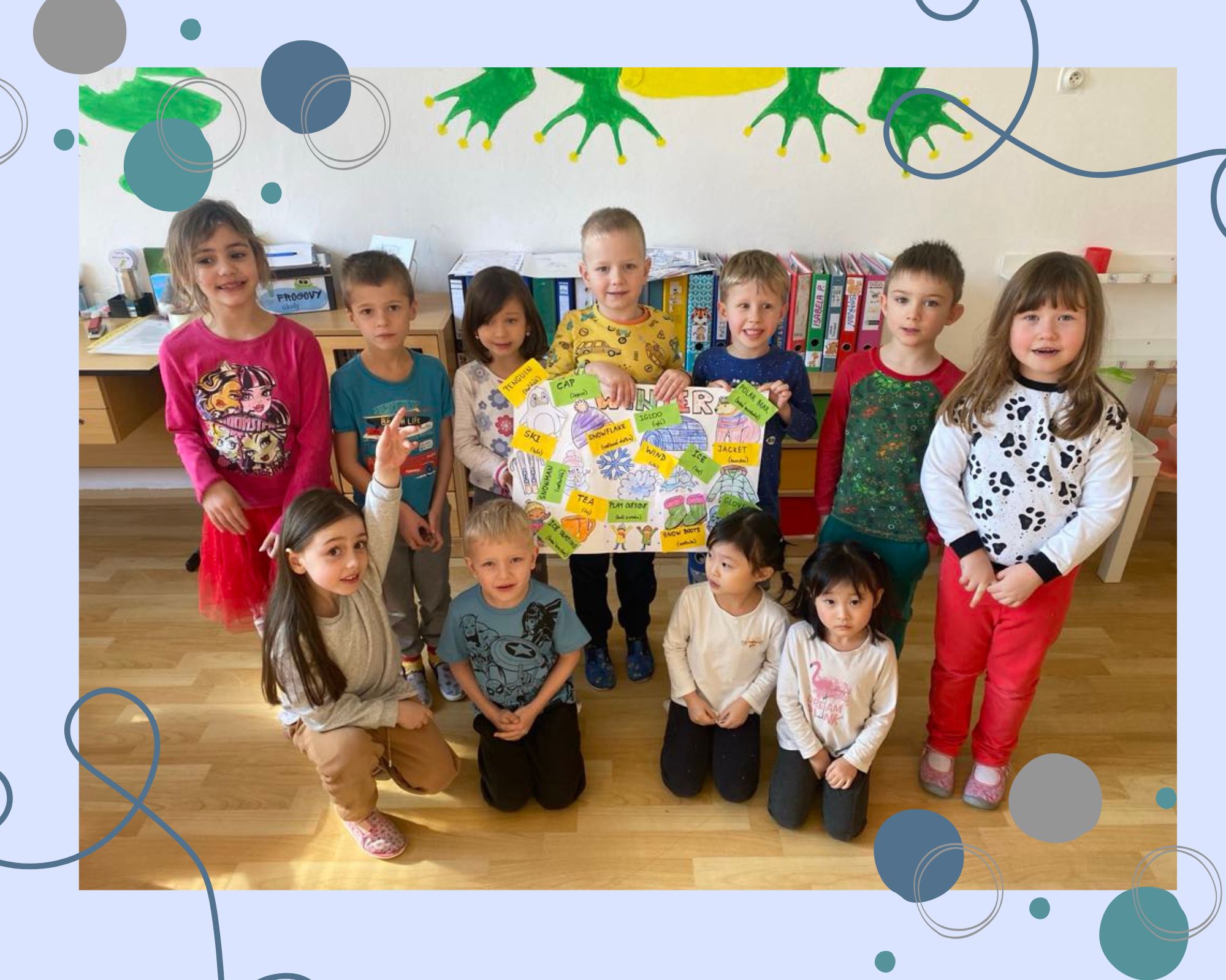 V lednu se Žabičky zase něco málo přiučily. Společně jsme dokázali vytvořit veliký plakát se zimními oděvy, aby se všichni, i ti anglicky mluvící, mohli kontrolovat, zda jsou dobře oblečeni na zimu. Taktéž jsme si zahráli dobrodružný příběh o tom, jak se potkali tři králové a putovali společně do Betléma. V neposlední řadě jsme si také pověděli o zimních sportech. Naši sportovci nám řekli, jaké sporty dělají a jak náročné jsou. Obohatili jsme se nejen o slovní zásobu, ale také o krásné vzpomínky.
