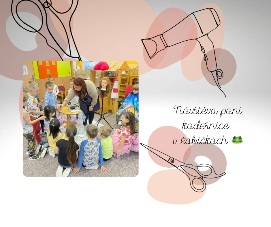 Ve třídě Žabiček jsme přivítali milou návštěvu – maminku jednoho z dětí, která pracuje jako kadeřnice. Dětem předvedla své řemeslo a ukázala, co všechno práce kadeřnice obnáší.